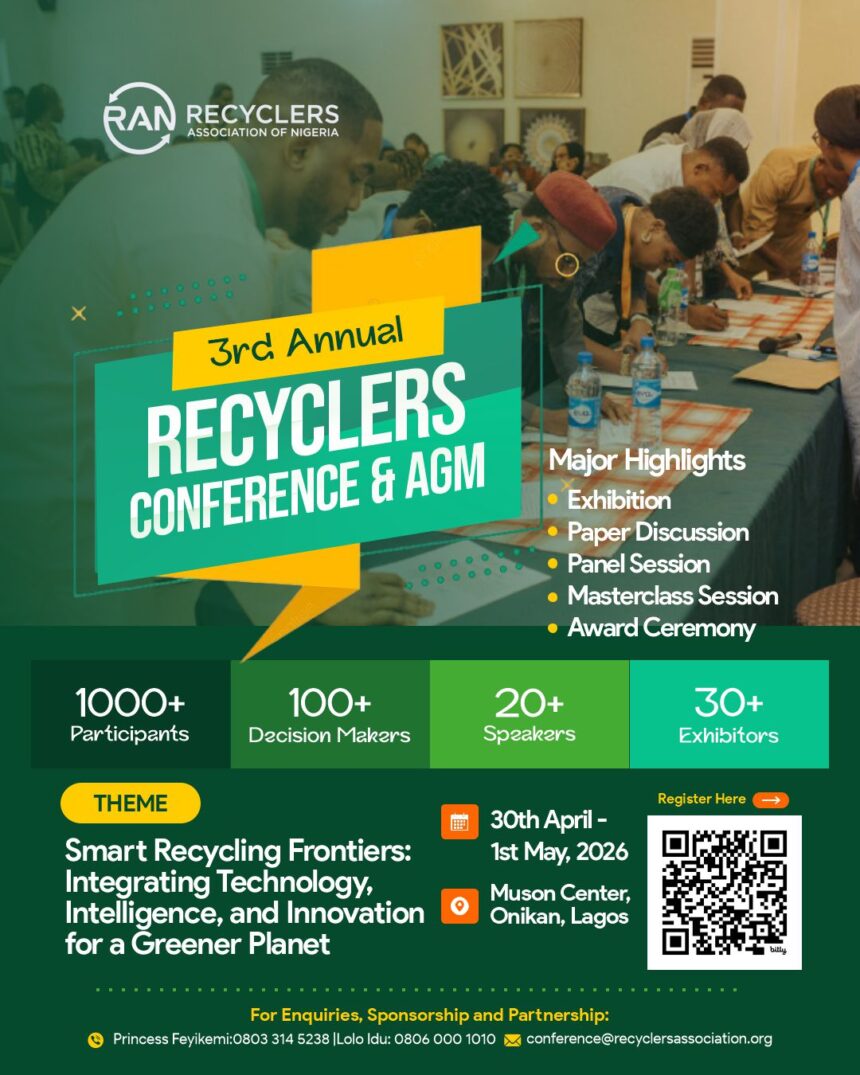 The Recyclers Association of Nigeria has announced plans to host its 3rd Annual Recyclers Conference and Annual General Meeting, bringing together stakeholders across the country’s waste management and circular economy value chain.